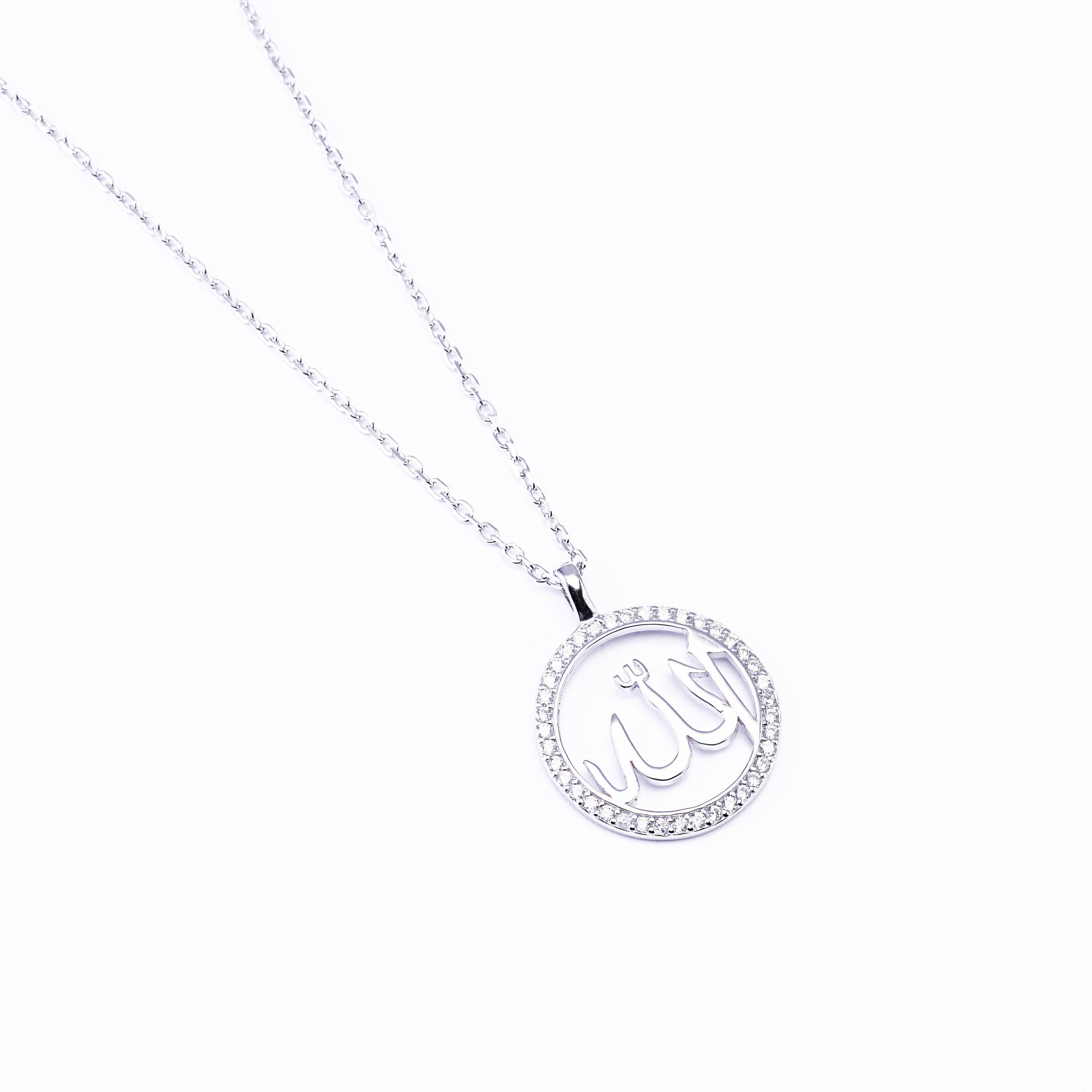 Circle Zirconia Frame The Word Of Majesty الله Necklace