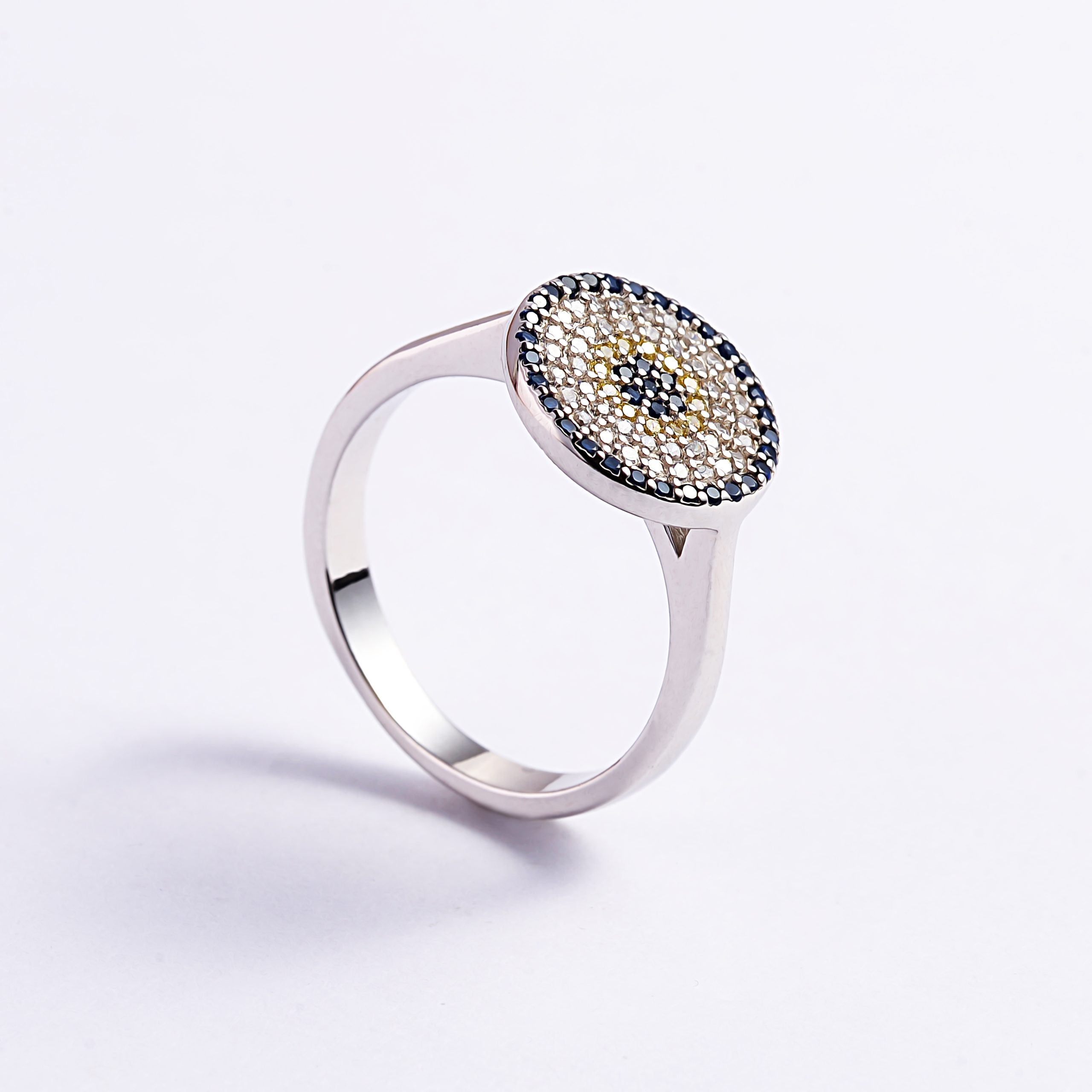 All eyes are on you, when you wear our sparkling Evil Eye Disc Ring with Blue Zirconia and clear cubic zirconia