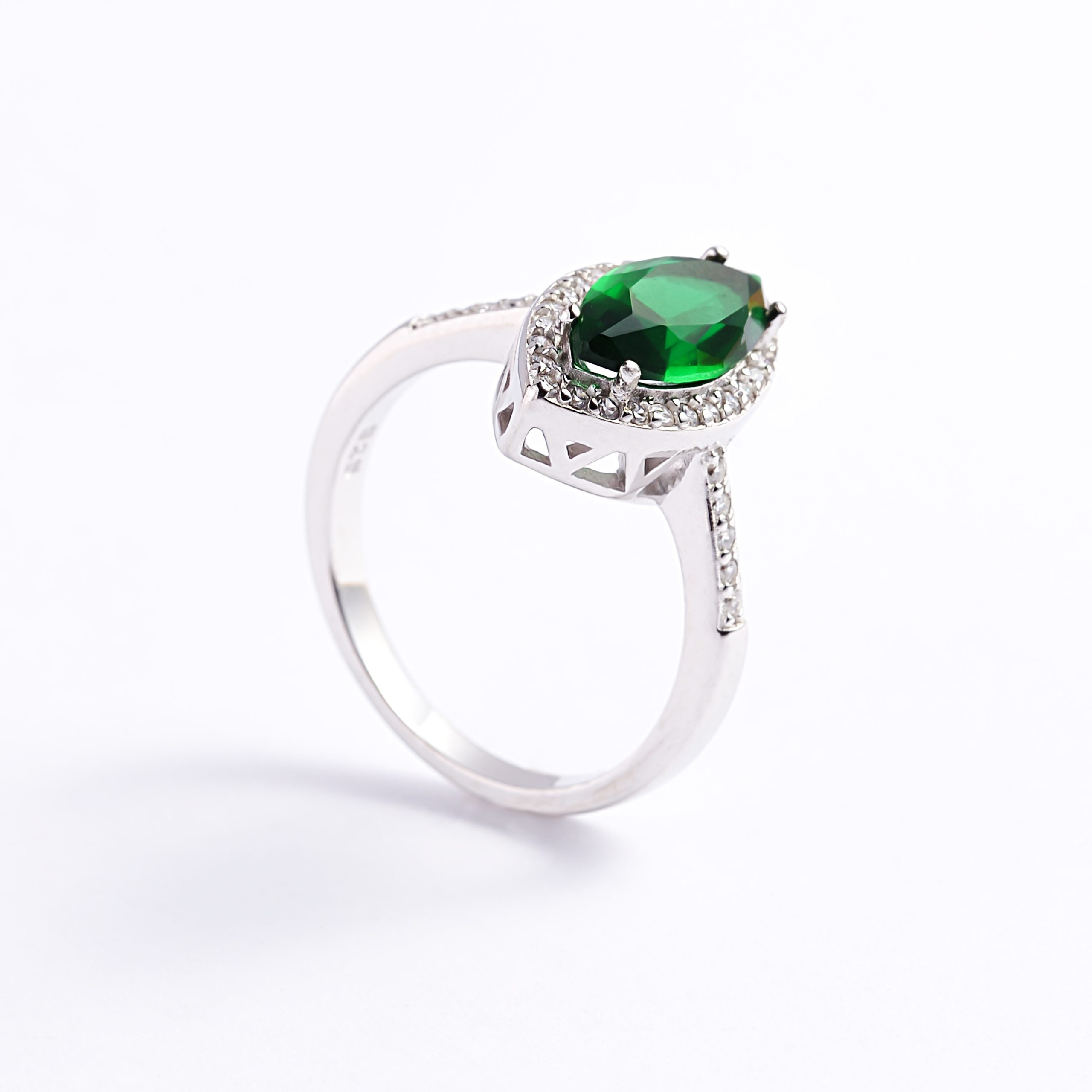 An elegant green marquise stone statement ring. It is created with a large green marquise cubic zirconia stone and . A beautiful ring for any special occasion.