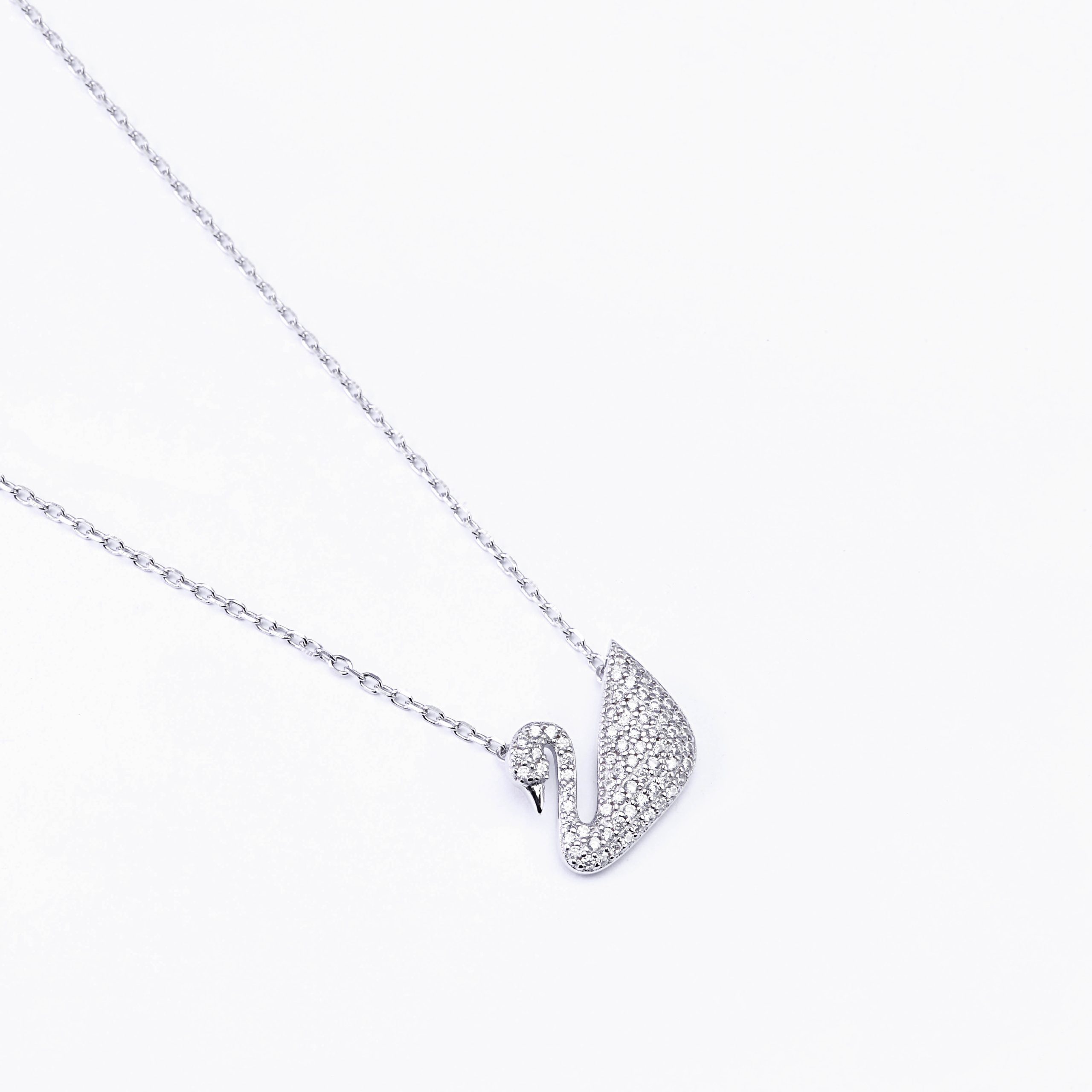 This elegant swan pendant is delicately embellished with clear zircon set in pavé and suspended on a classic link chain. It sparkles softly and complements any work or leisure outfit.